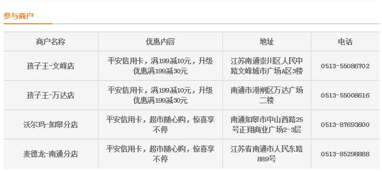 2016年3月15日-2016年6月30日,在南通孩子王刷平安信用卡消费:
