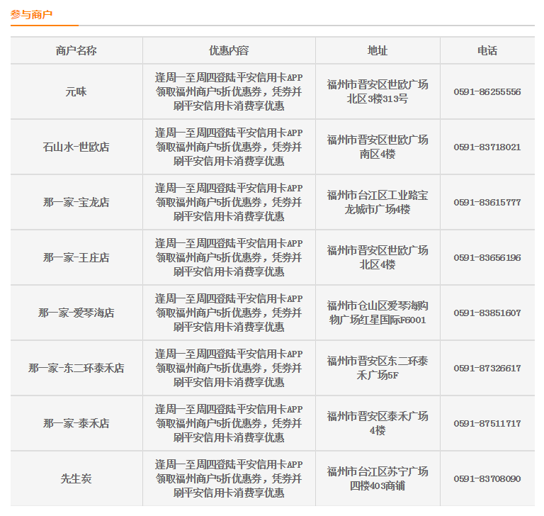 1. 每周三每人限领1张优惠券,不可重复领取;每个活动日优惠券数量有限(元味100份,福州石山水200份,那一家600份,先生炭100份),领完即止,如当日未领取到的客户可在下个活动日领取;